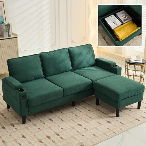 - Convertible sectionals sofa : This modern chenille sectional sofa features adjustable chaise lounge for ultimate comfort. It boasts high elastic sponge with enhanced density for superior durability and support. The navy couch seat ensures a cozy relaxation experience, relieving your body from fatigue - Comfortable Seating : Breathable chenille fabric with a unique texture against the skin. Pillow covers are removable and easy to clean. This combination sofa has a new style and durable quality. Comfortable and non-irritating odor, suitable for pregnant women and children - Sturdy & Durable : Featuring a sturdy mix of solid wood and metal frame, luxurious chenille fabric, high density foam, and a spacious design accommodating 3-4 people, this couch delivers top-notch performance and offers robust support. The exceptional spring cushion strikes the perfect balance between softness and firmness, ensuring you stay comfortable even after extended periods of sitting - Removable & washable cover : Crafted from high-quality chenille fabric that's not only soft and durable, but also resistant to damage for long-lasting use. Additionally, the sofa's back cushion and seat cushion covers are detachable and machine-washable for hassle-free cleaning - Easy installation : This L-shaped chenille sofa is designed to be easy to assemble with detailed instructions and can be assembled in less than 20 minutes with tools, saving you time and effort. All parts come in a box, please contact us if you are missing